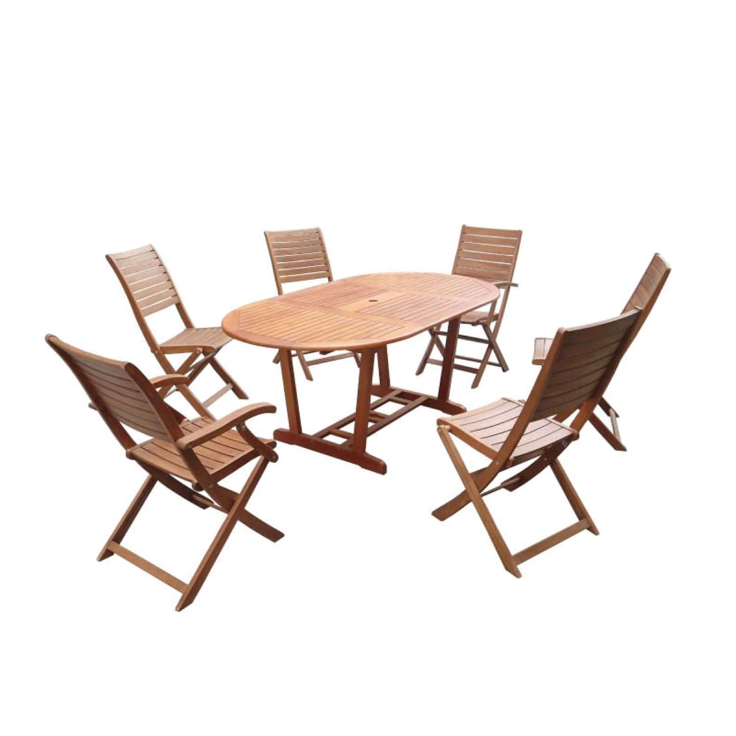 Elevate your garden or patio with the timeless charm and practicality of the Lapy Oval Extension Table Garden Set. Crafted from premium, weather-resistant hardwood, this elegant set is designed to blend seamlessly into any outdoor space while offering superior functionality for both casual and formal gatherings.